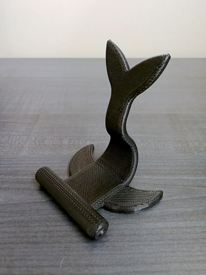I designed a phone stand modelled after the shape of a hammerhead shark. Using SolidWorks, I built a 3D model and prepared it for 3D printing using GrabCAD. I iterated the shape after my initial design until it would be efficient to 3D print and well-balanced with a low centre of mass (as indicated on the model).